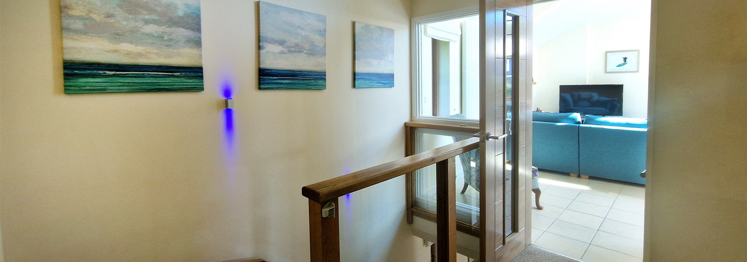 Outside there is off road parking for 1 car in front of the garage. Step outside onto the south-facing terrace, where you can bask in the warm sunshine as you sip your morning coffee or unwind with a glass of wine in the evening. The garage provides ample storage space for surfboards, bikes, and kayaks. There is even a table tennis table for some friendly competition and entertainment during your stay. Additionally, a tap for washing off wetsuits outside, as well as a rail for hanging them when washed, ensures you can effortlessly enjoy your favourite water activities.