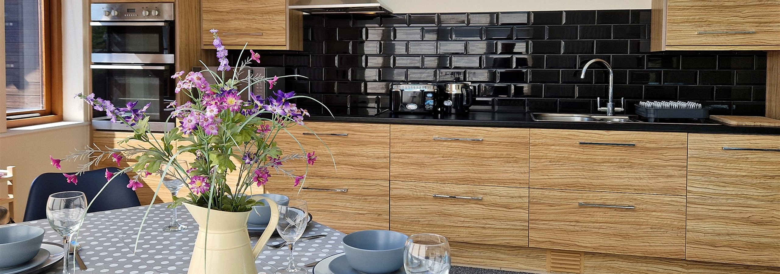 In addition to the lounge seating, the dining area provides ample space for a gathering of up to seven guests. Whether it's a hearty family meal or a celebratory feast, this dining area will accommodate all your culinary desires with built-in appliances, including an electric oven and hob, dishwasher and fridge/freezer, making meal preparation a breeze.