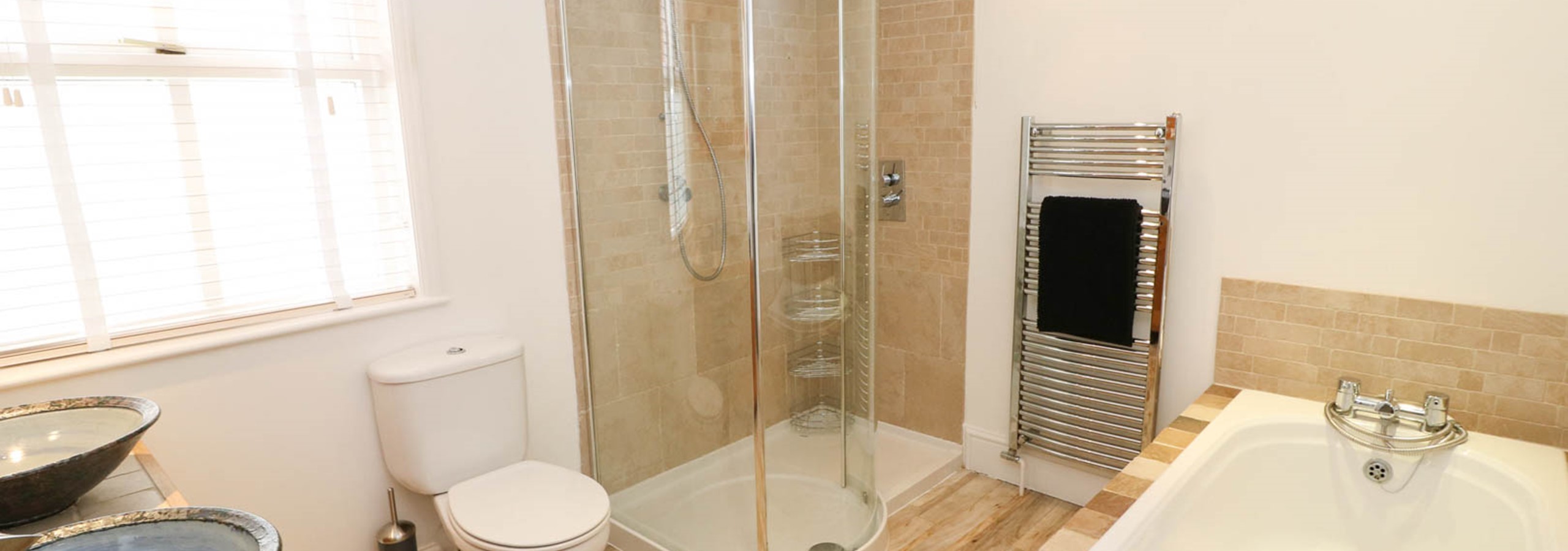 There is a family bathroom downstairs with bath, his & hers sinks and a separate walk in shower plus a shower room off the utility area which houses a washer/dryer. Upstairs there is a further family bathroom with shower attachment.