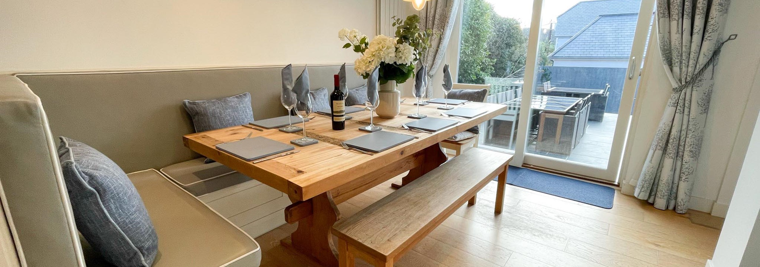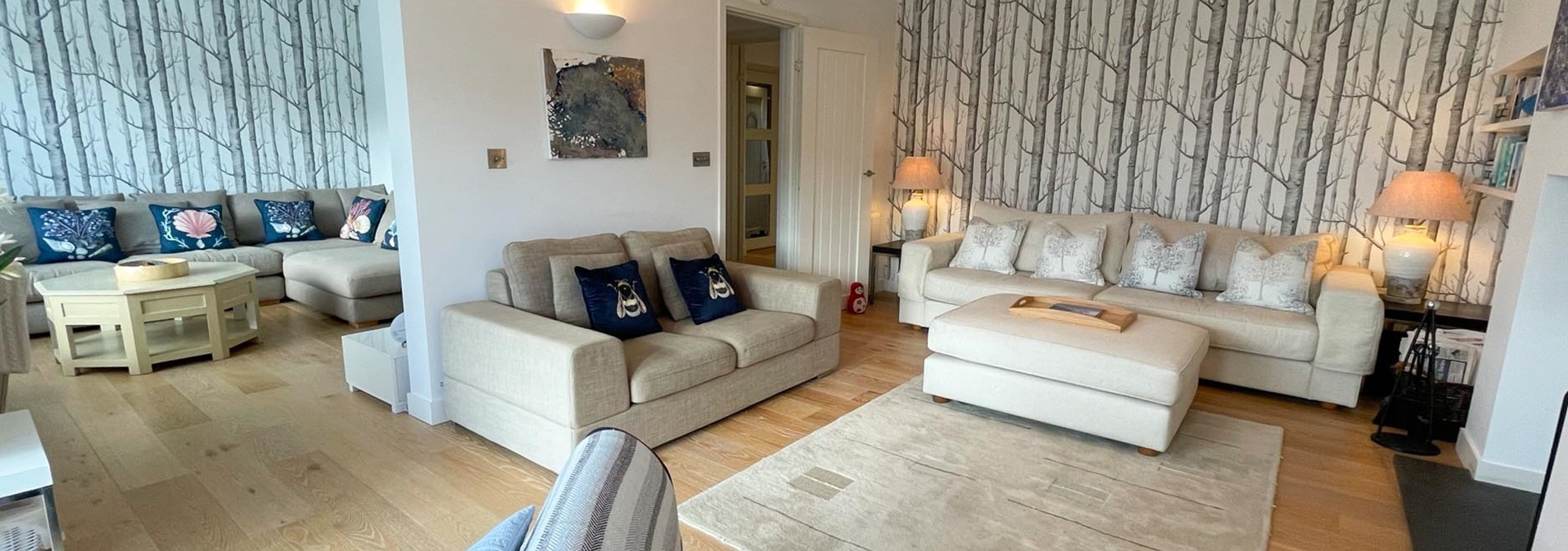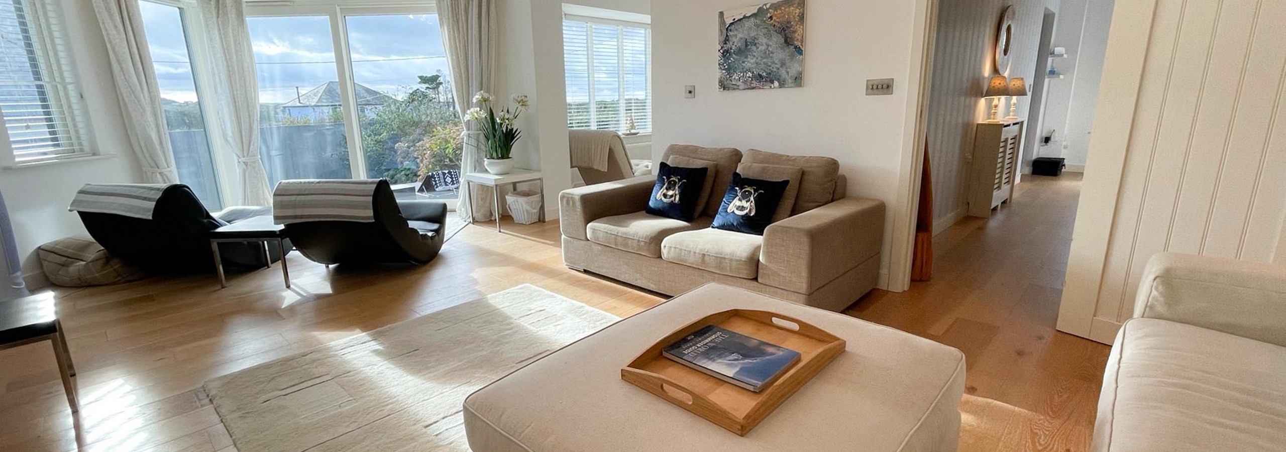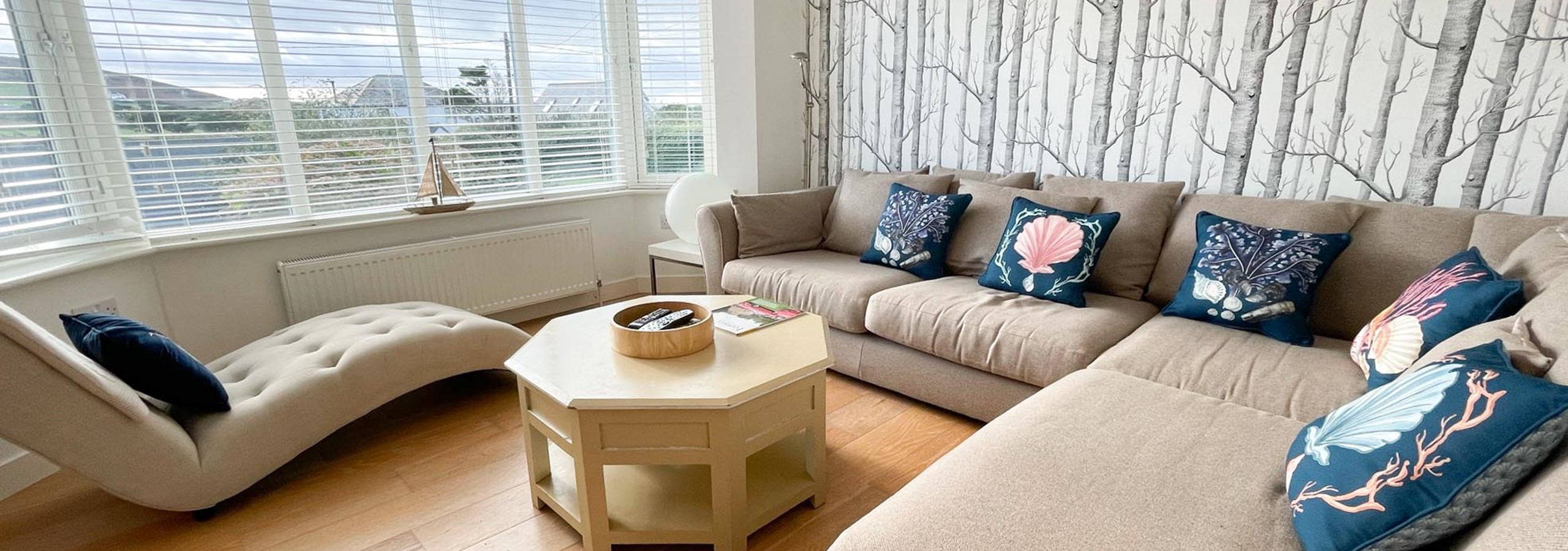 Homelands is certainly not lacking in living space. The main living room provides a wonderful space to relax with two comfortable sofas providing seating for 6-7 people together with two funky rocking recliners in front of the full height windows, which overlook the front terrace and garden towards the dunes.