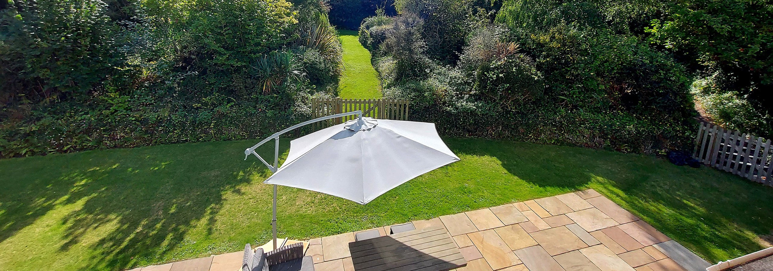 The lower garden is turfed and immaculately presented, with various walkways through the landscaped gardens. There are gates across these walkways to ensure that the lower garden remains a safe environment for children to play. We recommend parental supervision through the impressive gardens, which offer a wonderful place to explore. The garden also has a HOT TUB (charges apply) and outside shower. A covered outside area can be found in the back garden for BBQ's as well as patio area leading off the house with rattan furniture and a coal BBQ.