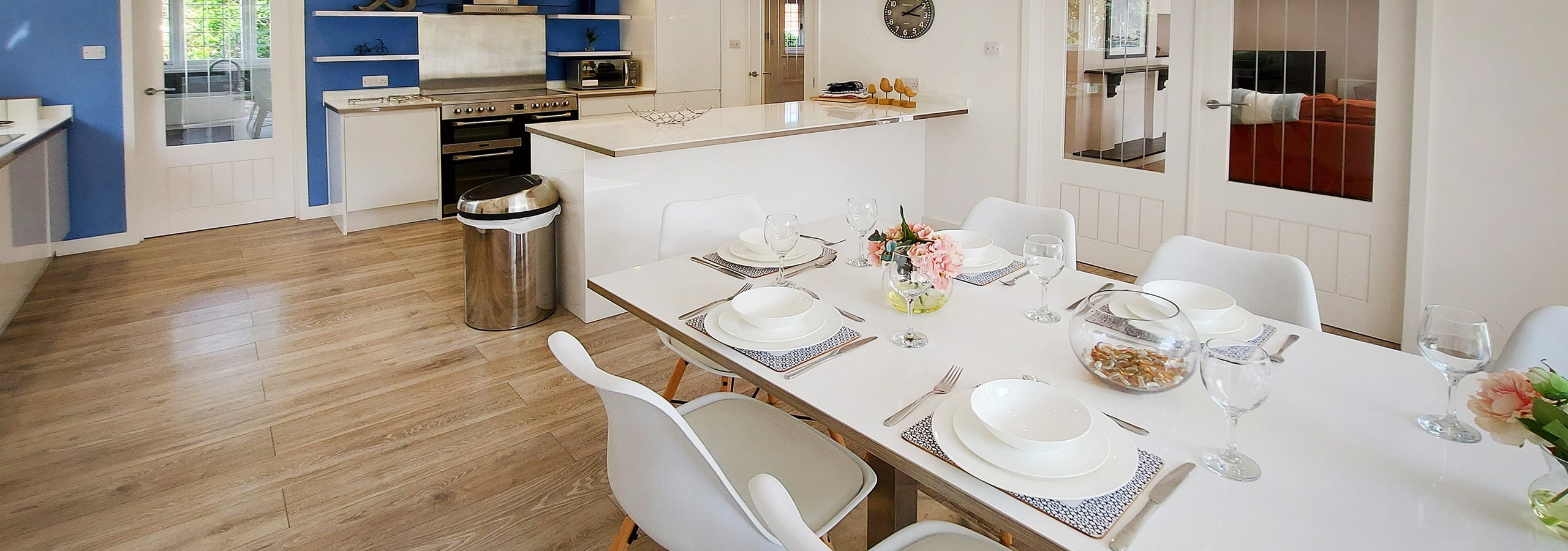 Spacious comfy well-equipped house - spotlessly clean. Comfy beds. Great to have superking master bedroom and the option in 2 other rooms. Really close to centre of village. The garden though … that's on another level! Someone has put a lot of love into that.
