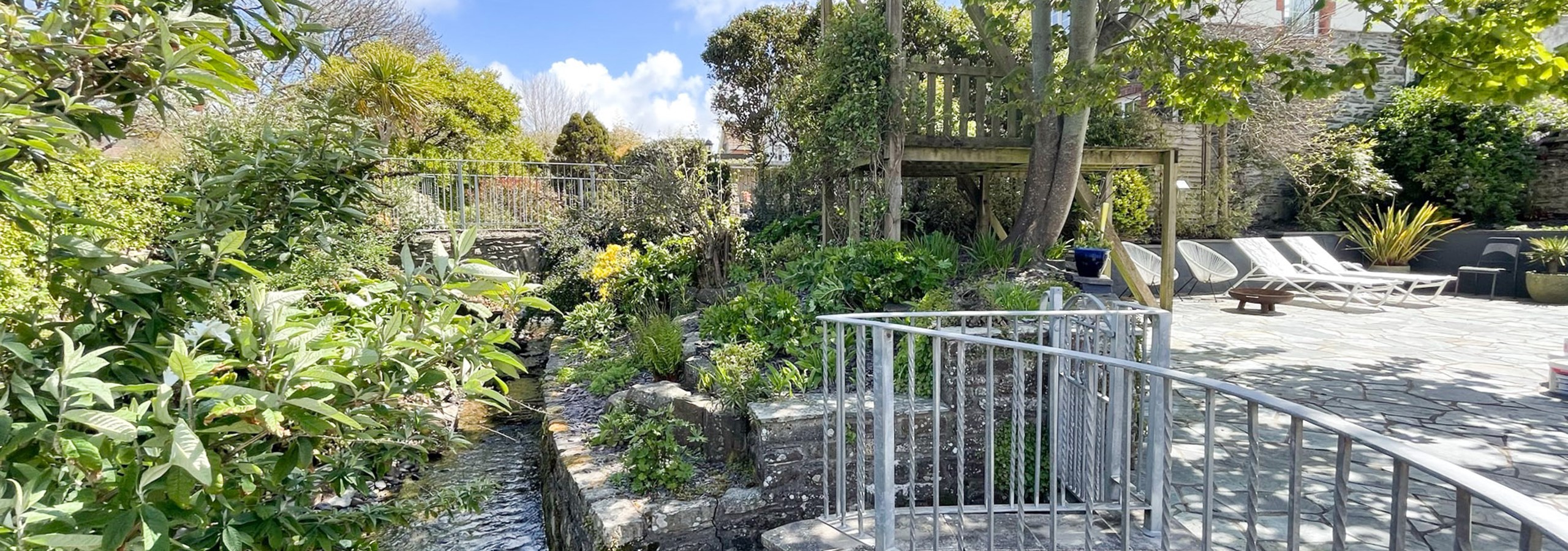 The stream runs between the driveway and the house. There are fences/borders and a gate in place, however children should be supervised at all times in the garden.