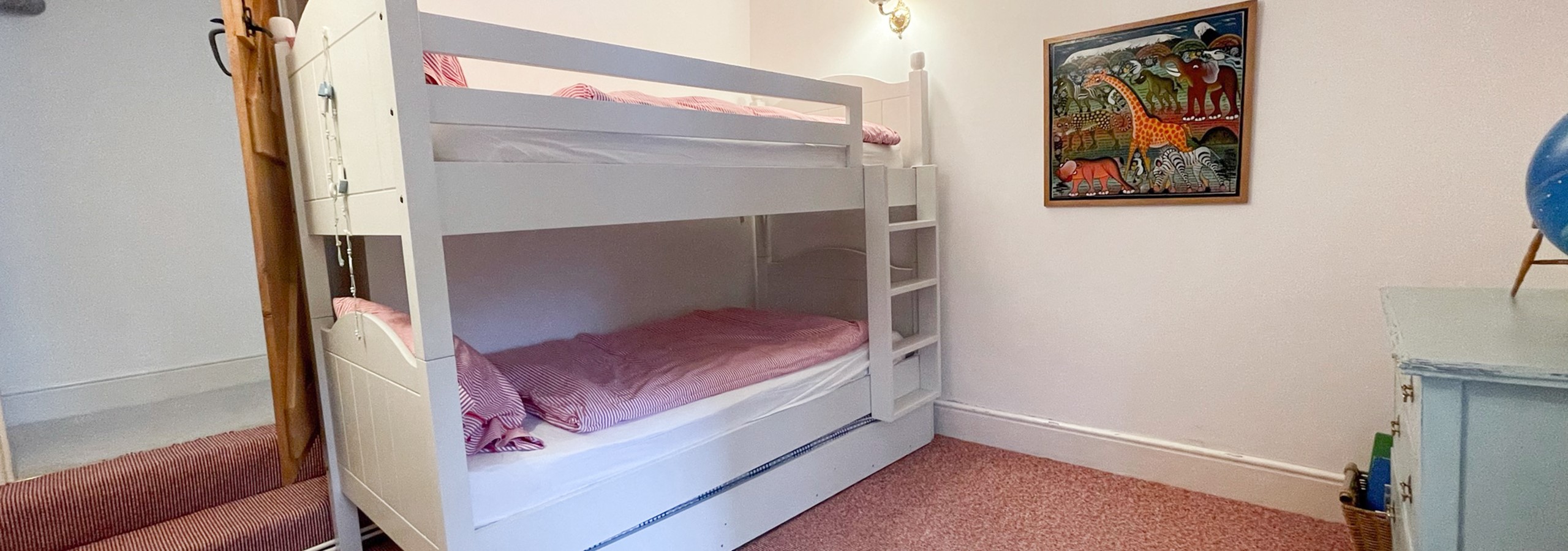 There are 4 bedrooms in total all located on the first floor. The master bedroom and bedroom 2 both have a double bed, bedroom 3 has twin beds and bedroom 4 has bunk beds with an optional extra trundle bed for the 9th guest. For those who suffer from allergies, please note that this property has feather bedding.