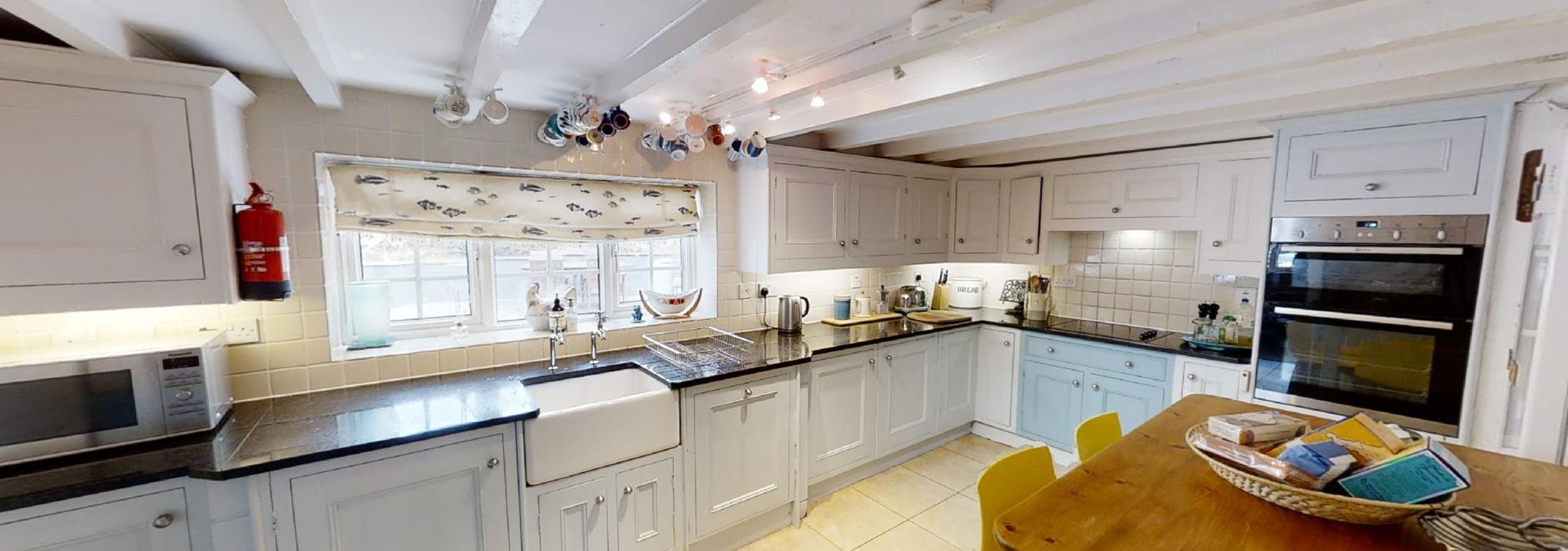 The main sitting room has a Smart TV and 3 sofas offering comfortable seating for up to 8 people. There is a log burner which is perfect for snuggling up after coming home from a crisp winter walk or energising surfing session!