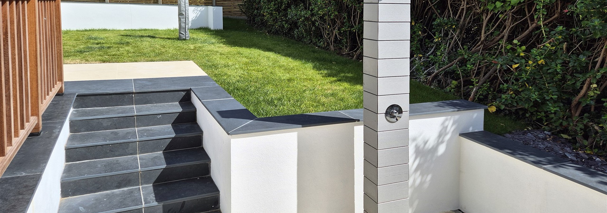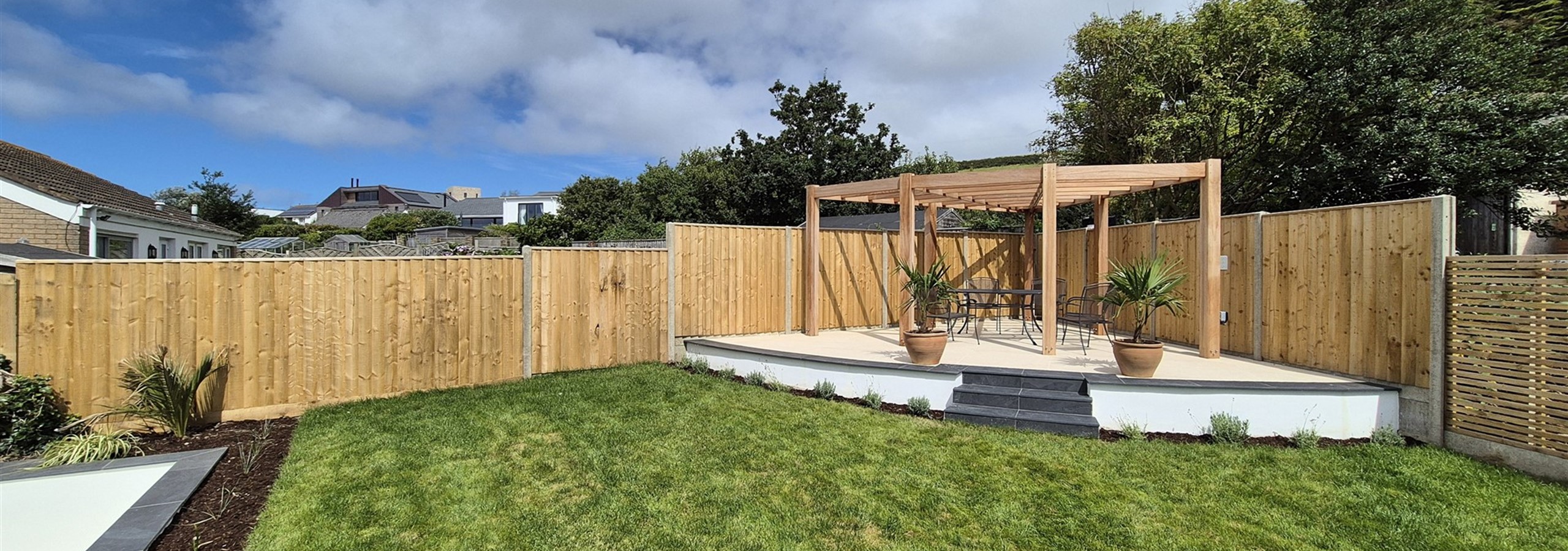 Outside The modern landscaped garden features a lawned area, a separate raised deck under a stylish pergola, and a second outdoor seating area with retractable awning accessed off the dining room and hall. Both perfect for dining and entertaining. An outdoor shower is also available, providing a convenient rinse off after a day at the beach.