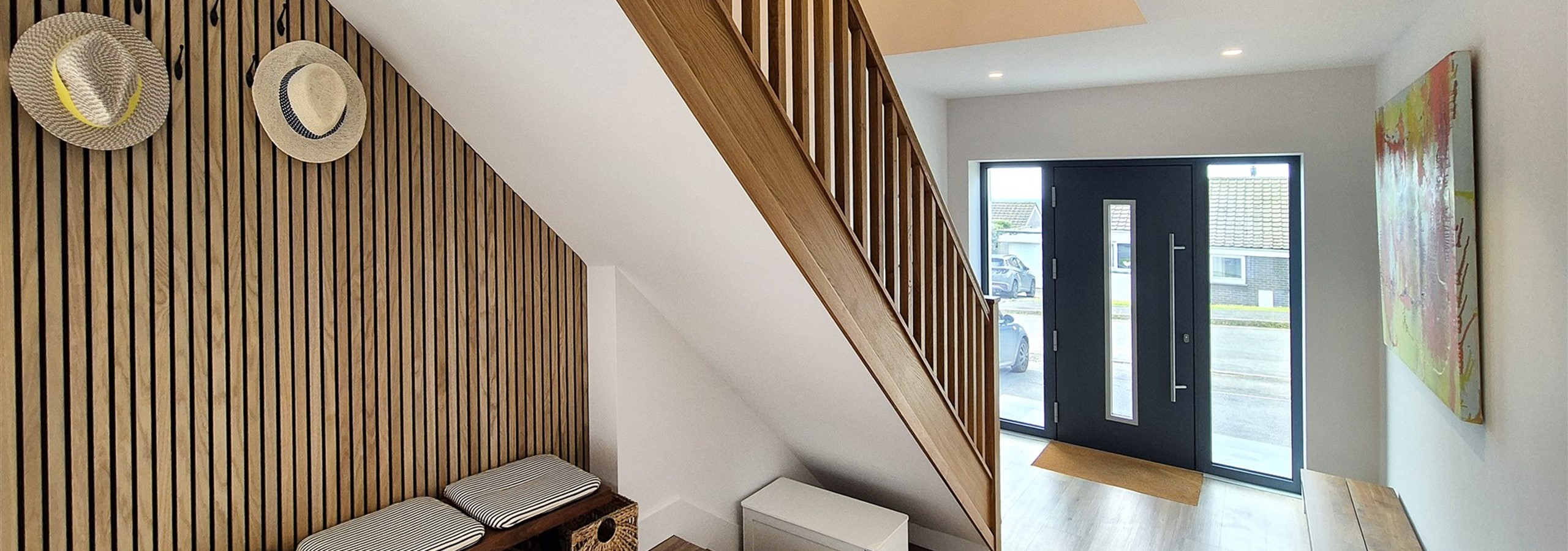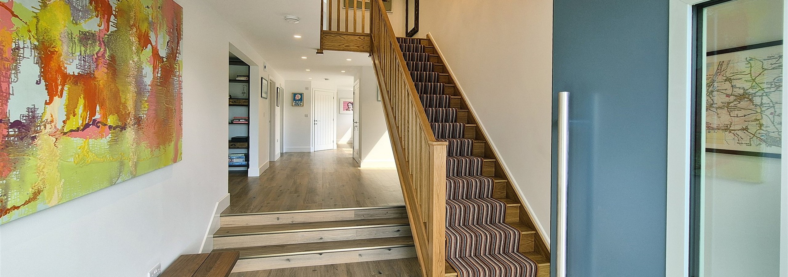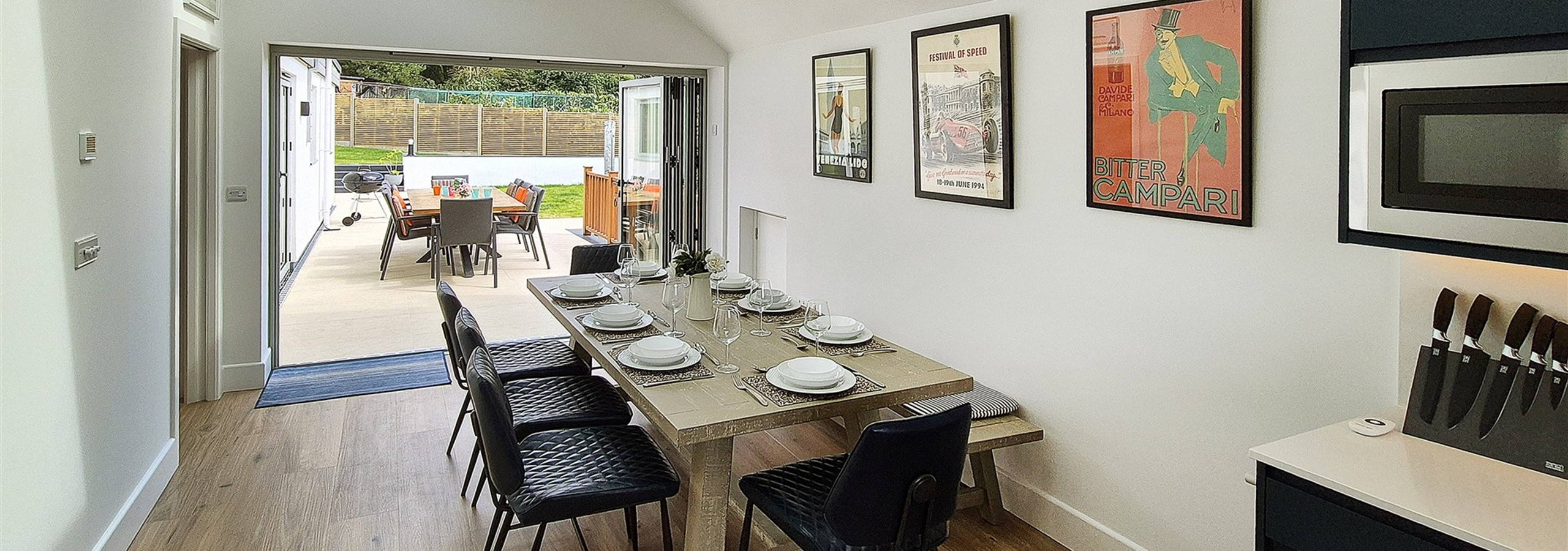 There is an attractive kitchen/diner, where contemporary design meets functionality. This space is ideal for family meals and entertaining. Bifold doors in the dining area open onto a outdoor seating area complete with retractable awning, perfect for al fresco dining.