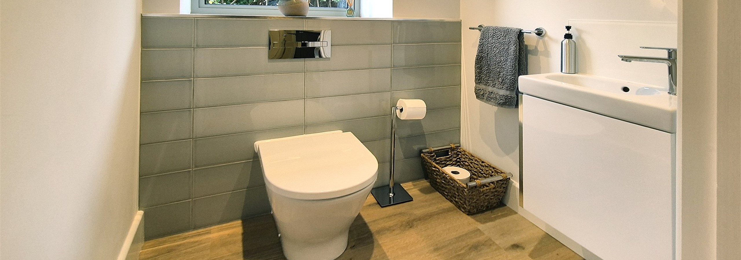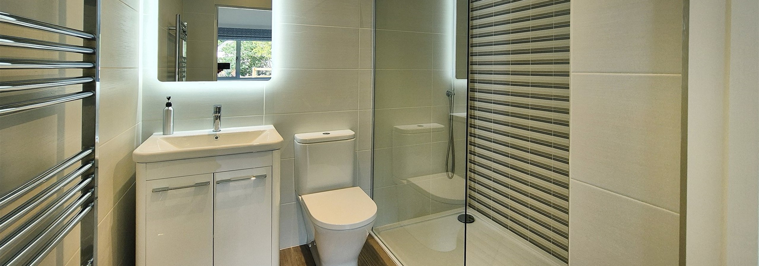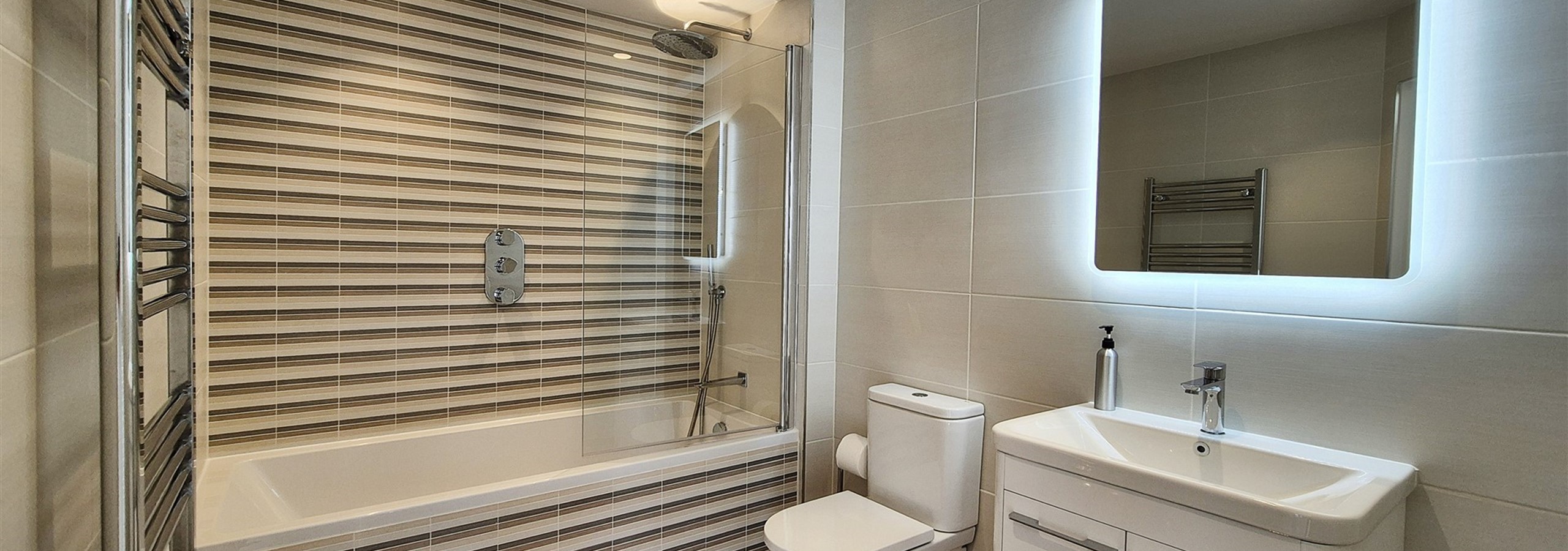 There are three well-appointed bathrooms: one family bathroom on the ground floor, two en-suite shower rooms upstairs (walk-in showers), and an additional convenient WC on the ground floor. The family bathroom has a bath and overhead shower.