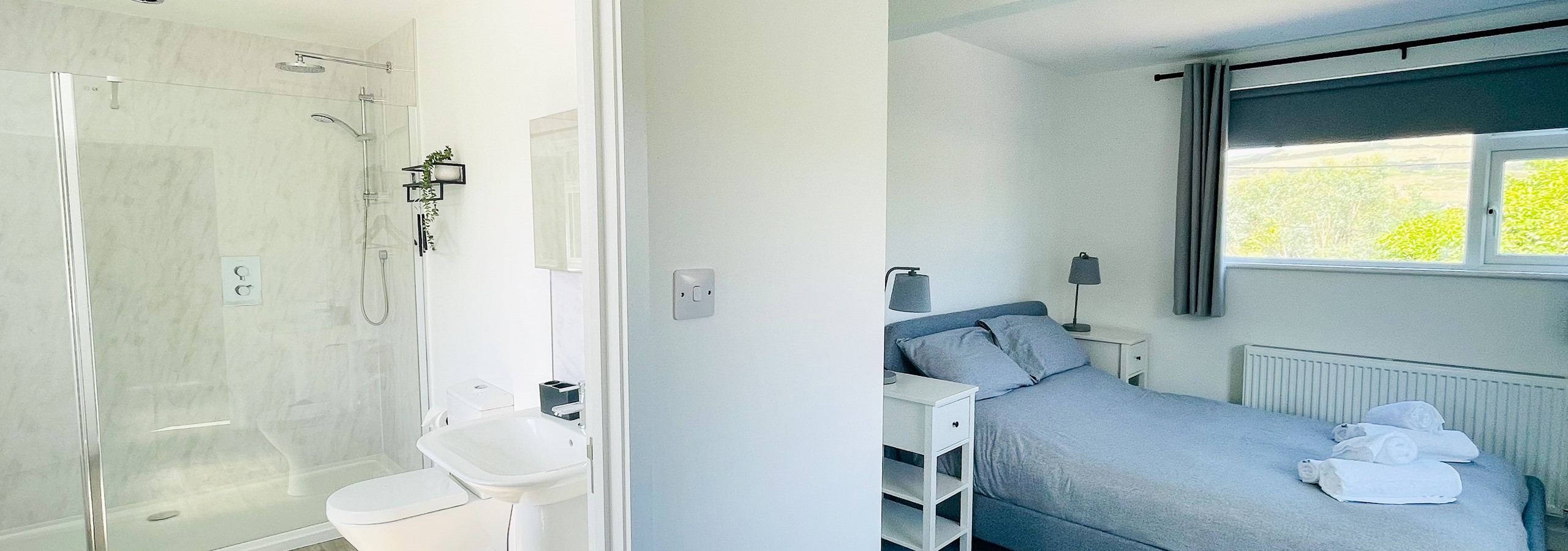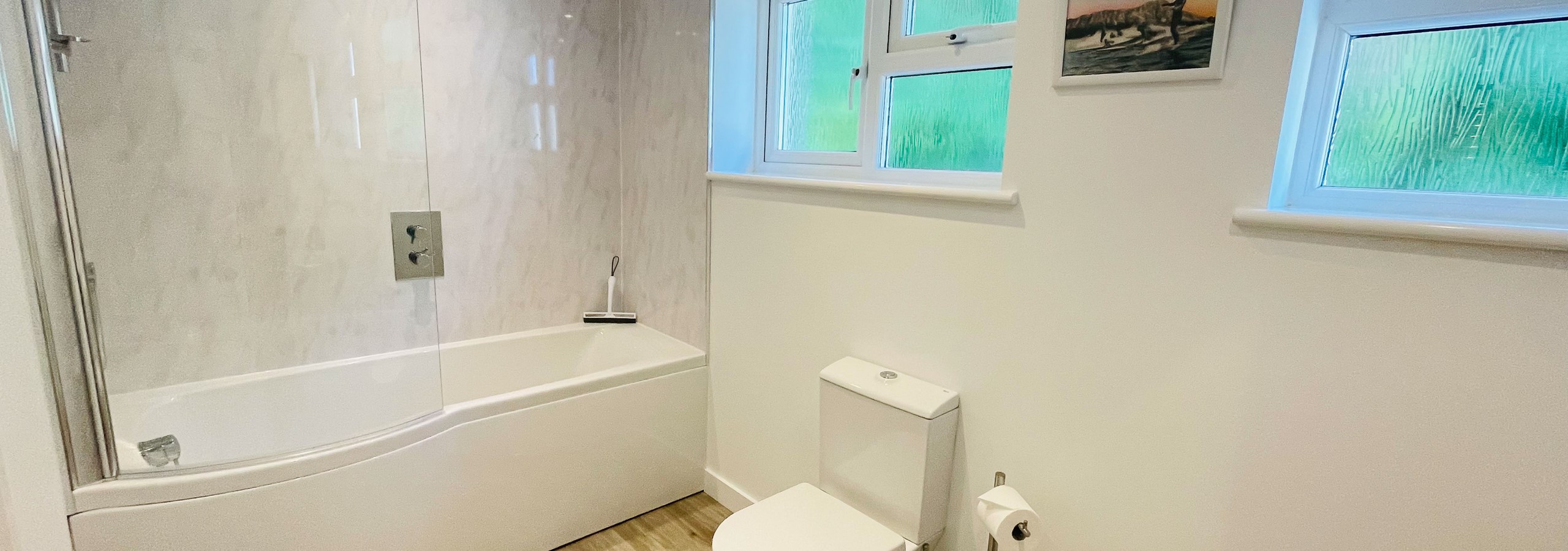 There are certainly no shortages of shower/bathrooms to choose from at Sea Whisper! 5 in total plus an outside shower for washing off after the beach. To the ground floor there is a bathroom with shower over, a shower room plus a large wet room offering 2 rain shower heads with telescopic attachments. This wet room has a wider door to enable wheelchair access and can also be accessed from outside - so after a day at the beach/surfing you can shower off without leaving sandy footprints! Outside this wet room there is also an outside shower. Upstairs there is a further bathroom with shower over the bath plus the master en-suite which has a lovely large walk-in shower with rain head and hand held attachment.
