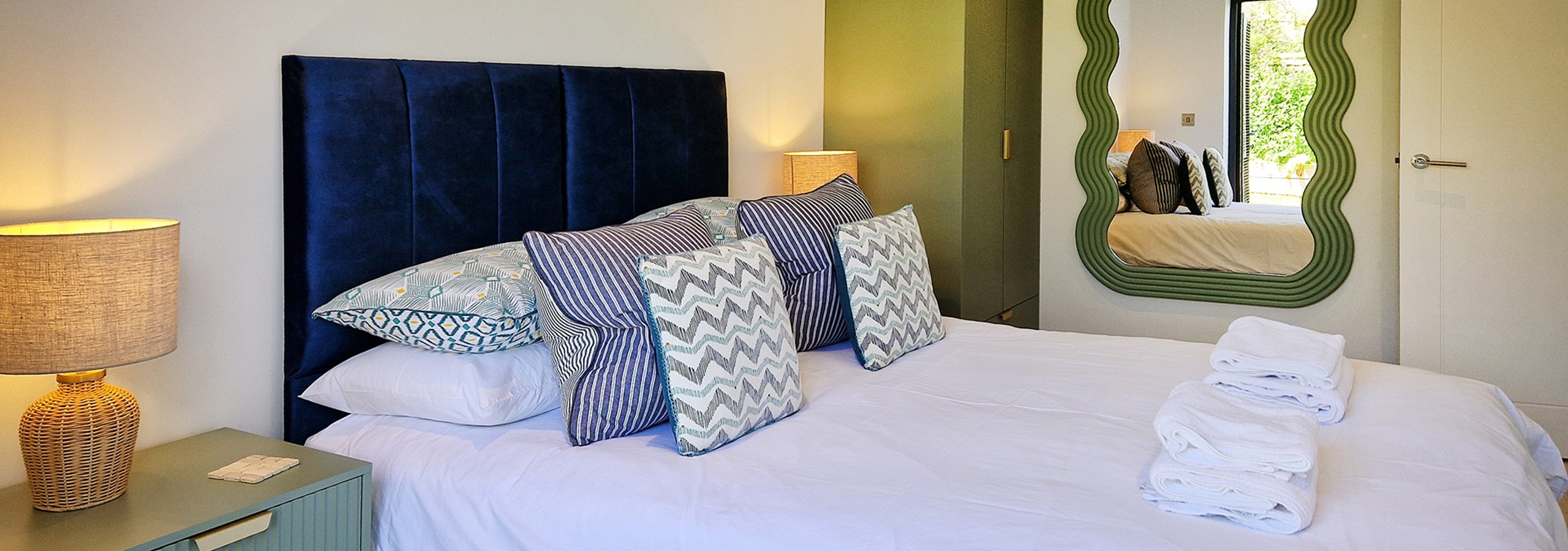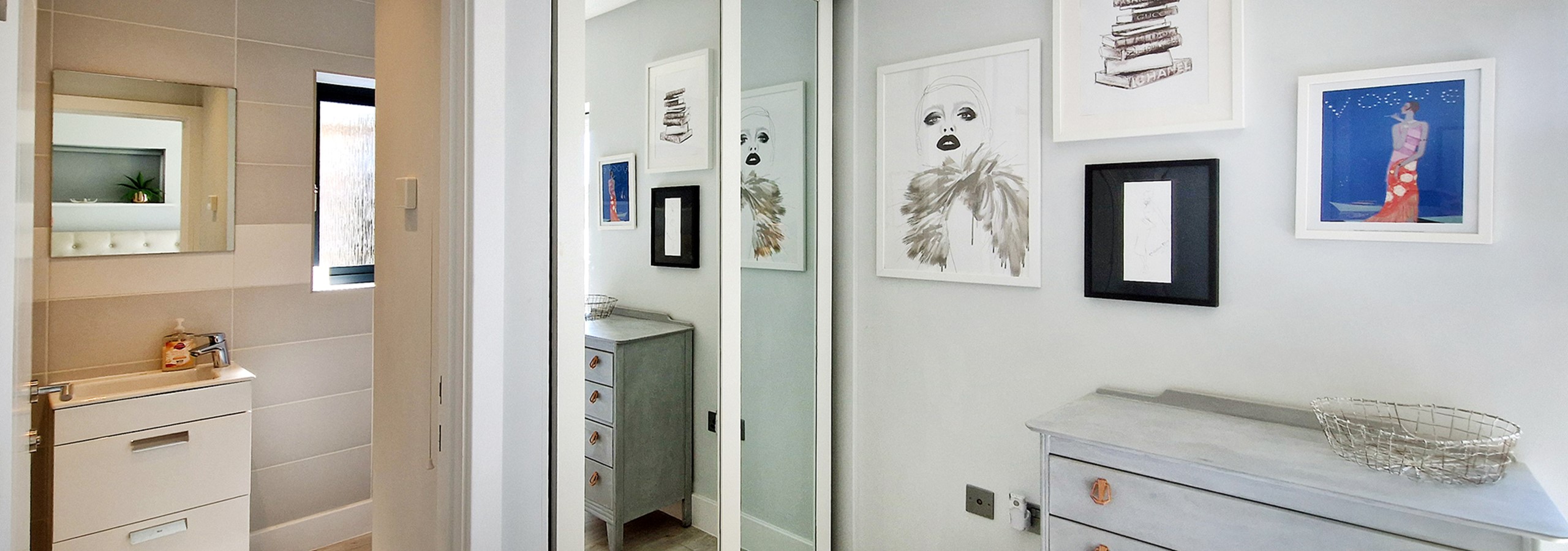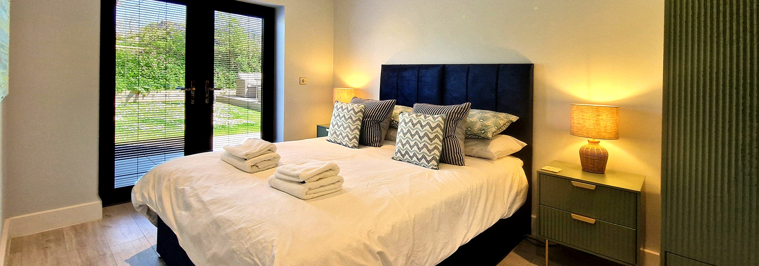 The bedrooms and bathrooms to the property are found on the ground floor. There is a beautifully appointed master bedroom with king size bed, built-in wardrobe and drawer storage. This bedroom also has an equally beautiful en-suite shower room.