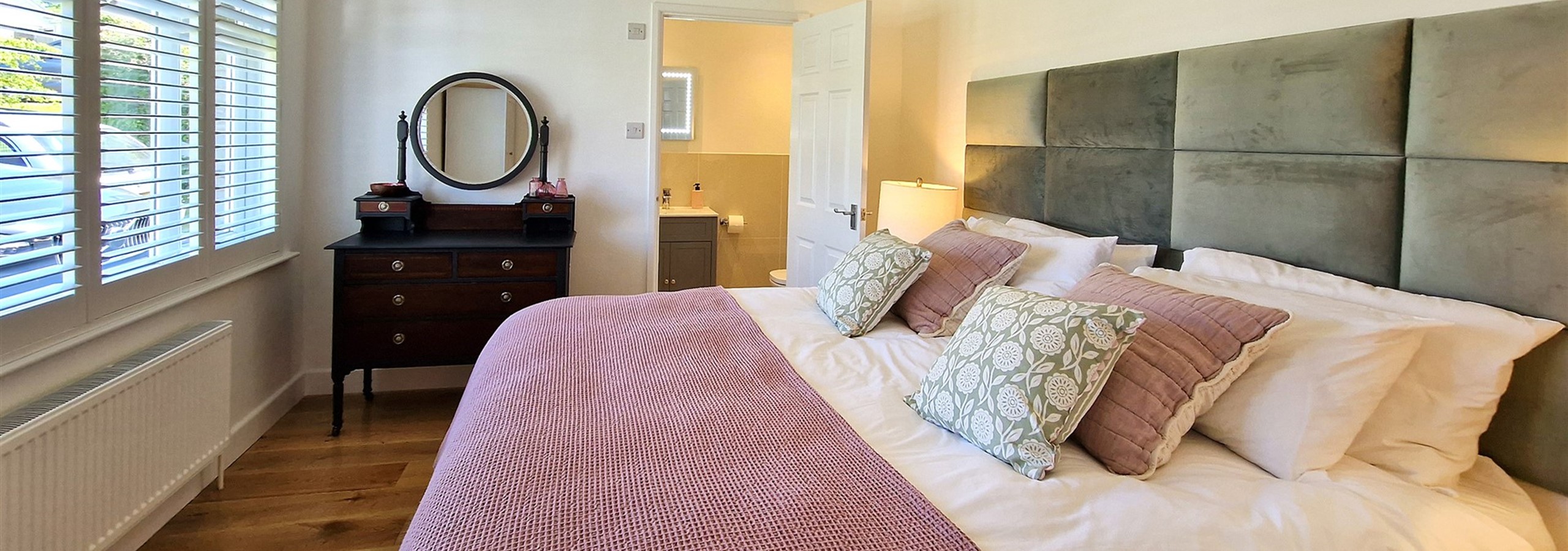 The property is set over one level and has a total of three bedrooms. The beautifully decorated master bedroom has a super king bed as default. However, it is a zip and link bed and so can also be made into twin. There is also a wardrobe, vanity dresser and en-suite with shower, sink and w/c.