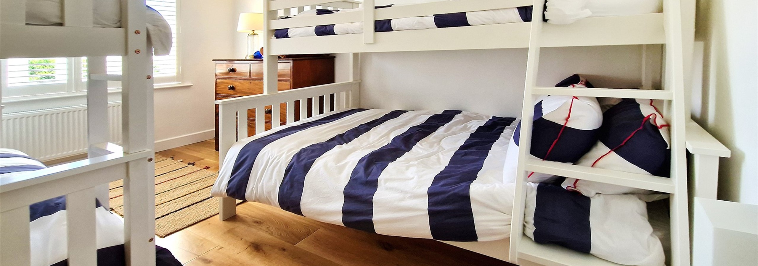 Bedroom 3 - Bunk Room - Sleeps 4 - one standard set of bunk beds & one bunk with double (suitable for one person only) and single bed over