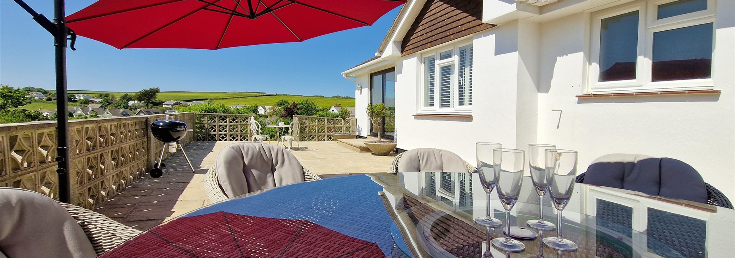 We've not long returned from a great weeks stay at this property, & what a property it was. It had plenty of room for us (2 couples and a dog) inside and outside, lovely bedrooms and lounge area with big sofas. It was very comfortable, & was well equipped. The patio area is big and has great views ideal for a sundowner to watch the sunset over. The garden is lovely & ideal for our friends dog Treacle to run around in after her ball. Can't recommend this house more, and we've all said we'll be back. The village has 2 fantastic pubs within a short walking distance, lovely food (great beer & ciders) so very spoilt for choice, well worth several visits - as we did.