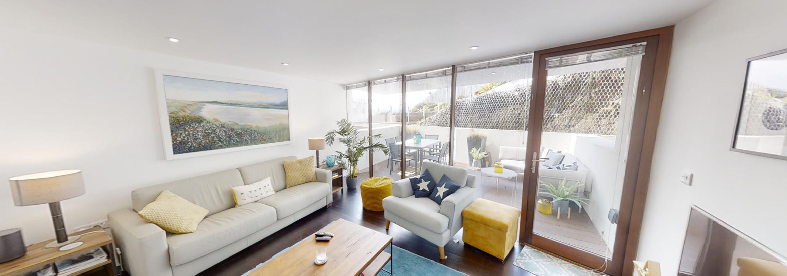Thoroughly enjoyed an Oct half term in number 3. Parking, outside shower and surf board room all great. High quality fixtures and fittings with attention to details that make a holiday easy (kids books and toys to a wine fridge and Google smart speakers in lounge and main bed. Nice angle to the beach get sunrise bouncing off the wave fronts and southerly warmth. Balcony/terraces have floor above them meaning limited direct sun but also protection from rain.