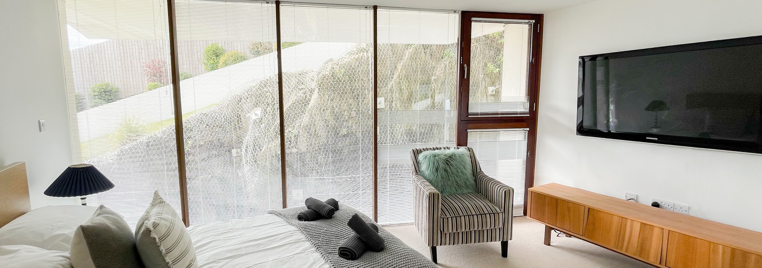 Please note - the blinds in the bedrooms are not black out blinds and therefore some light does filter through. Unfortunately, it is not possible install curtains due to planning restrictions.