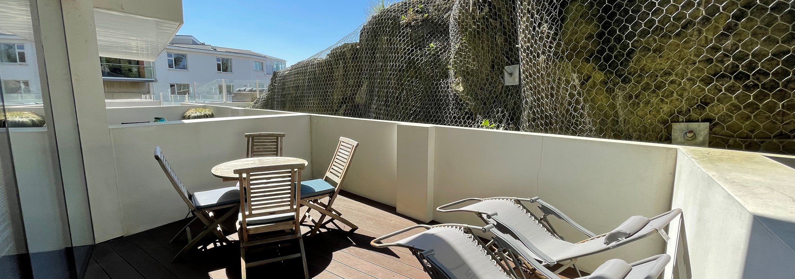 There is underground dedicated parking area with space for 1 vehicle. The apartment is accessed from the car park area via a stairway or lift. (Please note there is a headroom limit on the underground parking of max. two metres. For guidance, a long wheel base VW Transporter (minus roof racks) can access this area. This should be noted as these may need to be removed from large vehicles before access. There is lift access from the car park to main entrance level. There is a communal storage room for surfboards, wet suits and bikes.