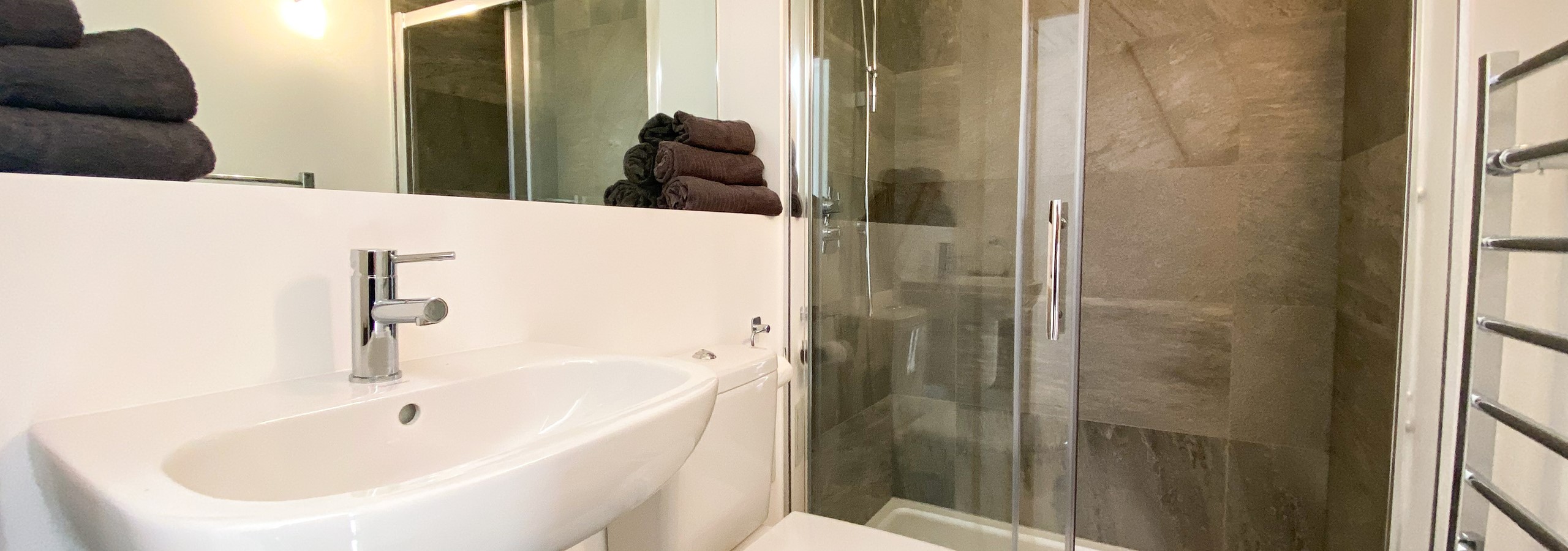 The bedrooms are located on the lower level of the apartment and comprise a master bedroom with kingsize bed and en-suite bathroom (bath with shower attachment, not suitable as a stand up shower due to restricted head height), twin beds to bedroom 2 and a double bed in bedroom 3. To this floor there is also a separate shower room. All bedrooms have access to the balcony which enjoys fabulous views over Woolacombe beach and out to sea. There is a double sofa bed in the living room for the 7th and 8th guests.