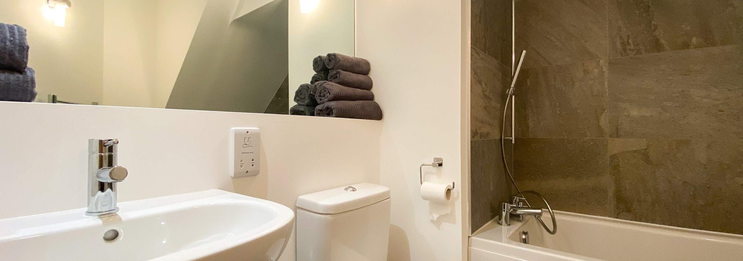 There is a family shower room plus en-suite bathroom to the master (bath with shower attachment, not suitable as a stand up shower due to restricted head height). There is a communal outdoor shower for washing off after the beach.