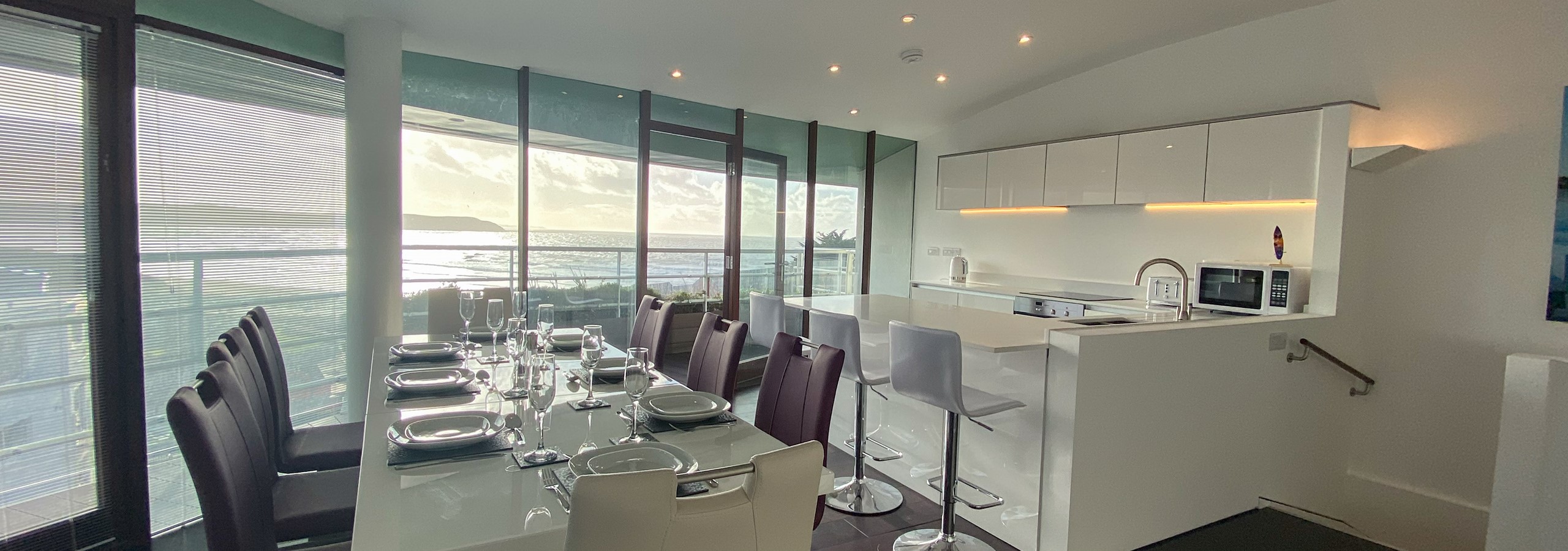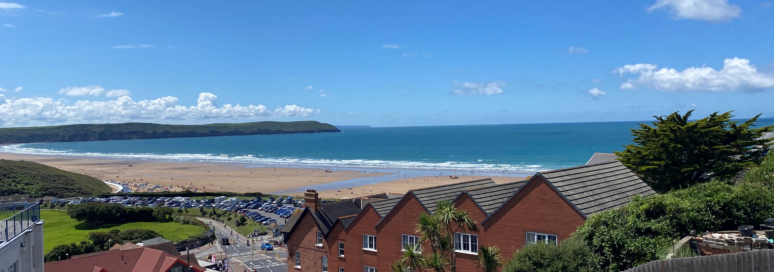 This is a beautiful apartment with spectacular views across the bay. It is spotlessly clean, modern and spacious and is literally a few minutes walk from Woolacombe beach which is ideal for adults and children alike. There are lots of lovely places to eat but if you choose to cook the kitchen is well equipped too. There's parking for 2 cars, storage for wetsuits and body/surf boards and a lift taking you to the apartment. Would highly recommend!