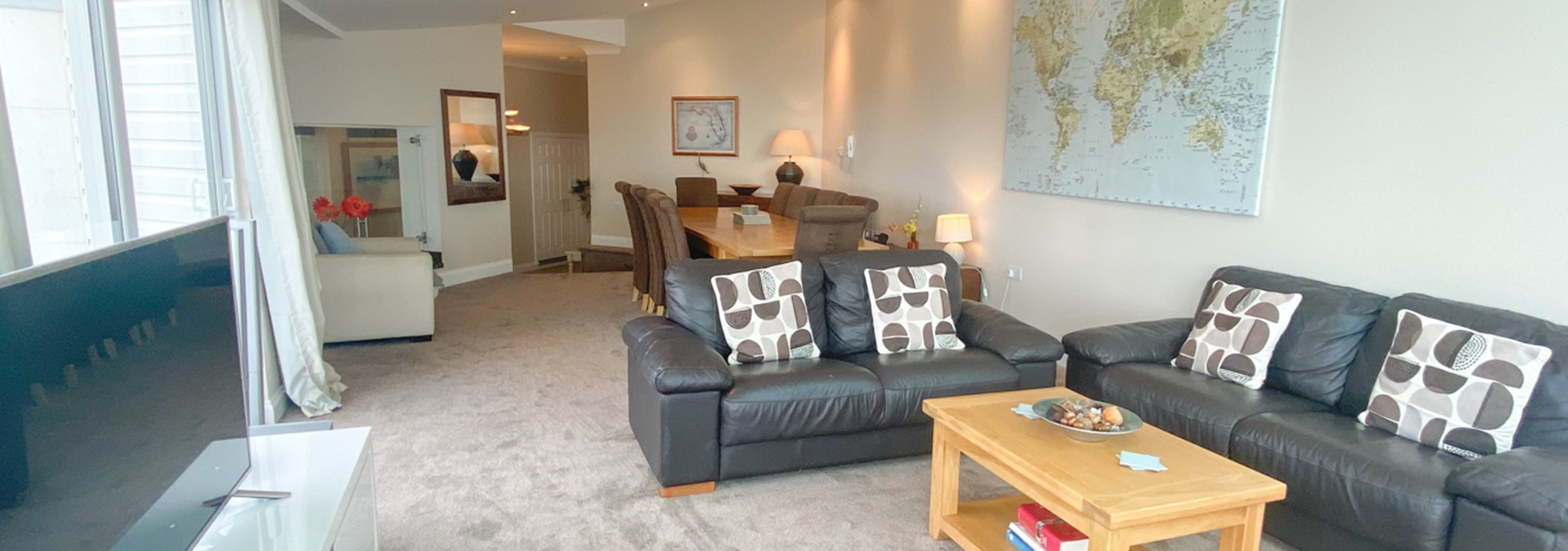 Penthouse with stunning views over Woolacombe Bay. Have rent in Woolacombe before this was a different league with very spacious area and a large wooden dining room table. By useful for food as covid 19 was keeping all the outside restaurants too busy. We had 6 adults and a 6 month old granddaughter, so spacious room The fridge was too small for weekly shop !!! Would visit again as best views in Woolacombe
